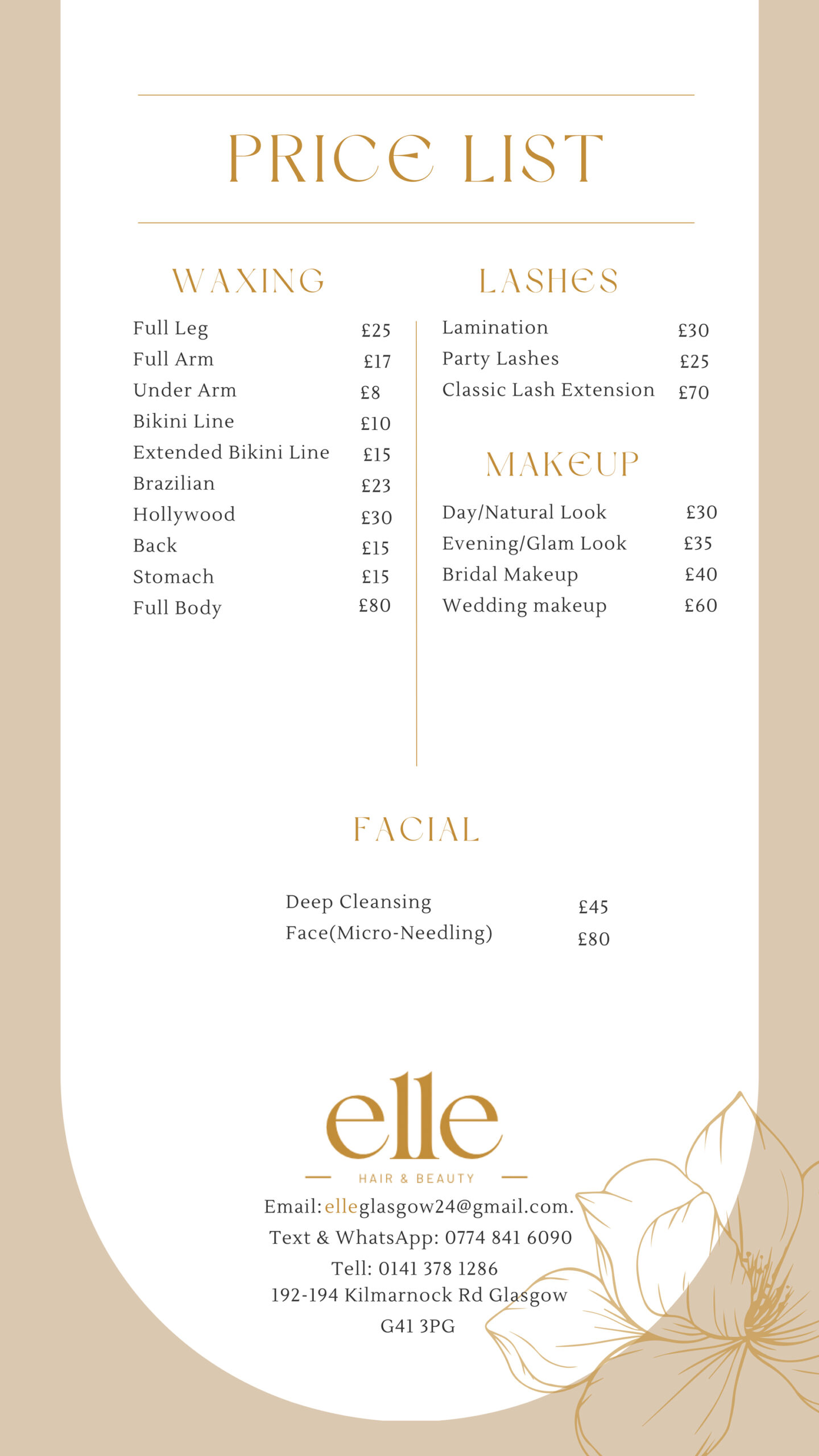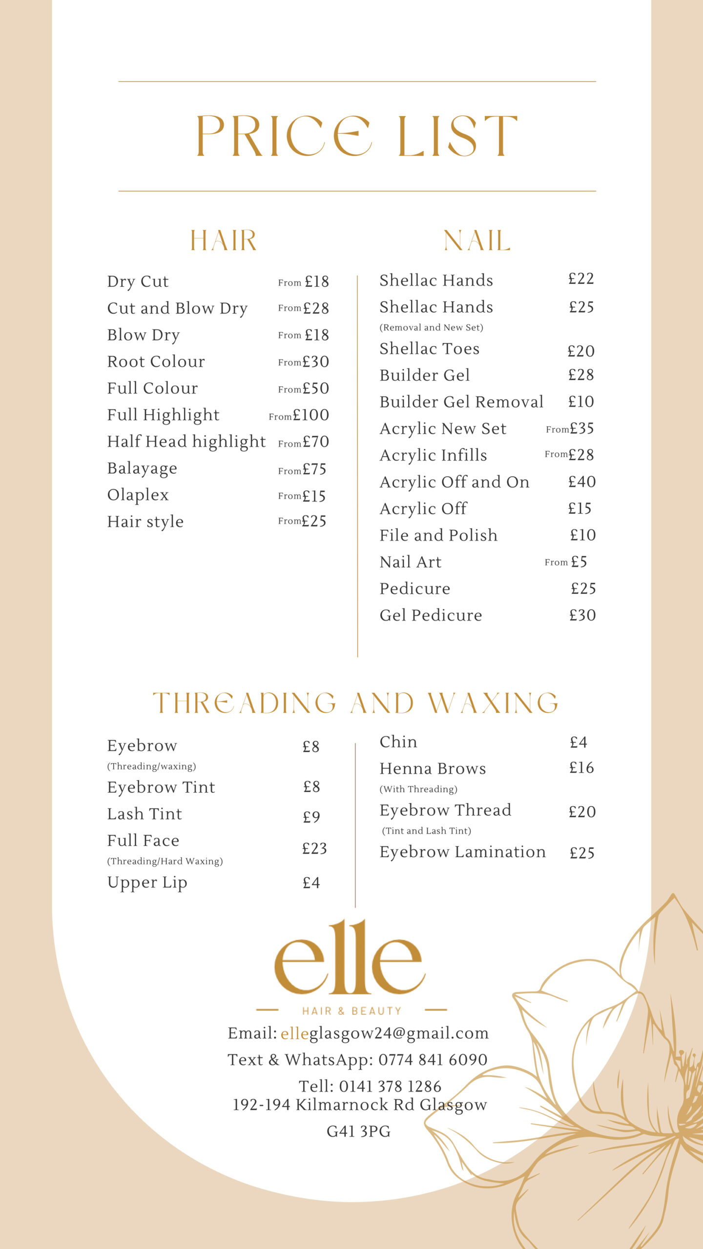 Address: elle Hair & Beauty, 192 Kilmarnock Rd, Shawlands, Glasgow G41 3PG